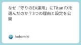 本日より、FXの自動売買(EA)の運用記録を公開するブログ**「守りのFX自動売買|ほったらかしEA運用の全記録」**をスタートしました。
